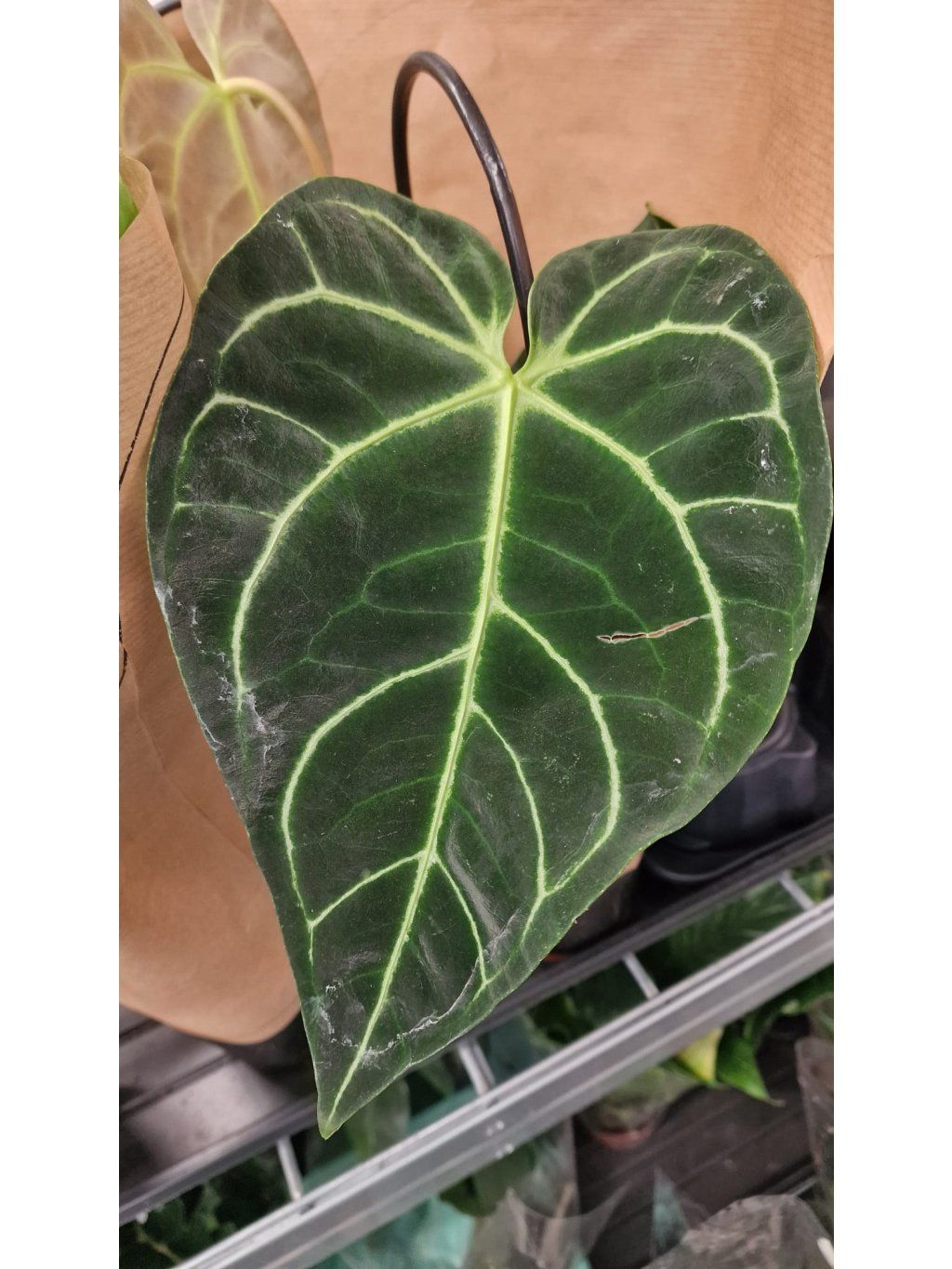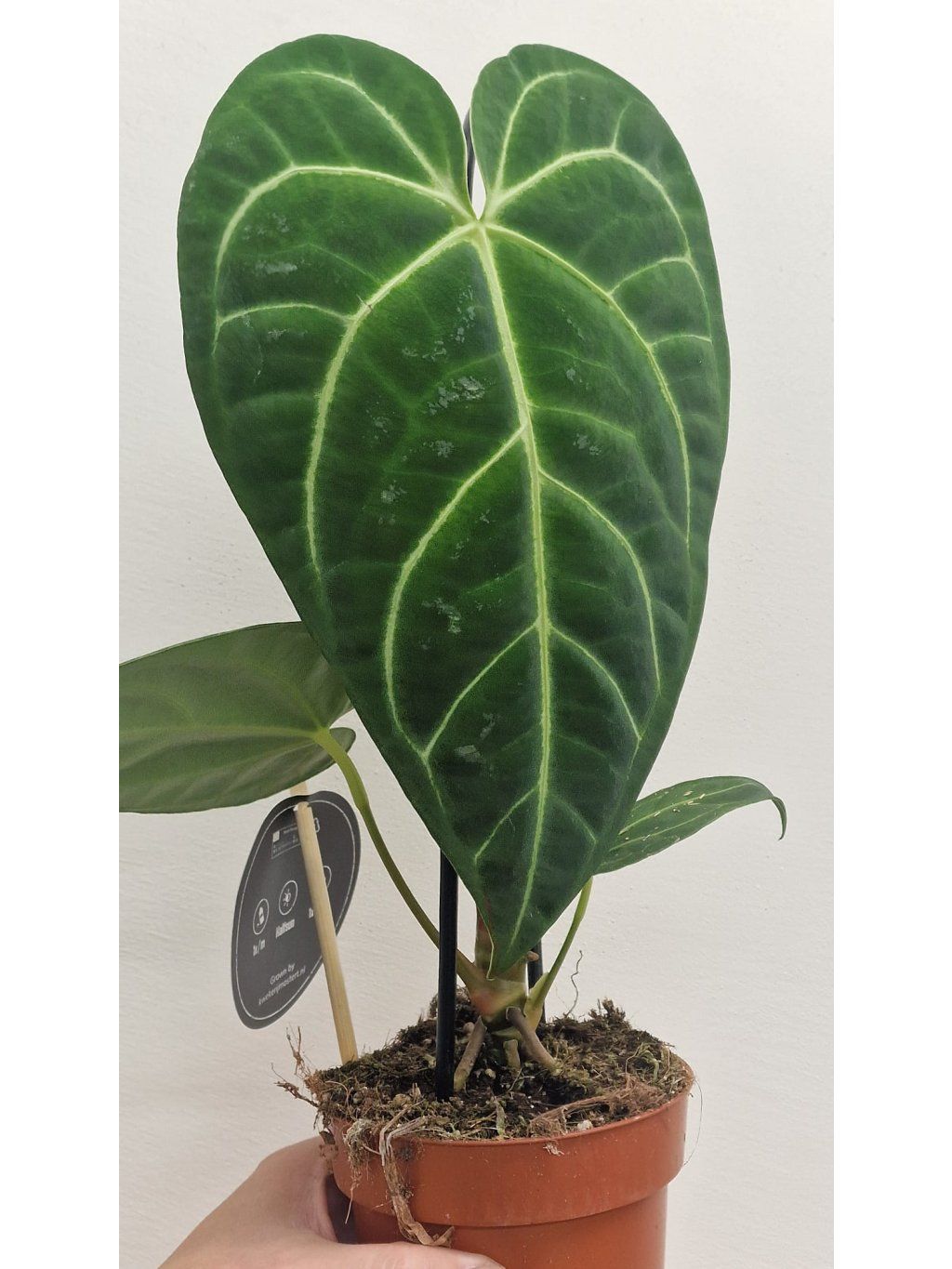 Anthurium Regale je vysoce ceněná tropická rostlina pocházející z horských oblastí Jižní Ameriky, zejména z Peru. Tento druh anthuria se vyznačuje mimořádně velkými, srdčitými listy, které mohou dorůstat až do délky přes 80 cm. Listy mají sametový, hluboce strukturovaný povrch v tmavě zelené barvě, doplněný výraznou, stříbřitě bílou žilnatinou, která vytváří dramatický kontrast a luxusní vzhled.