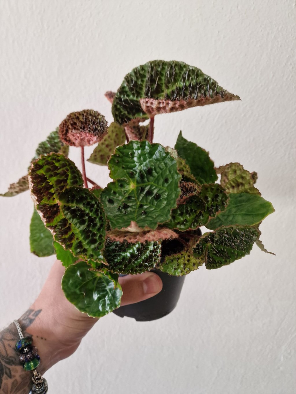 Begonia Rex Ferox je okrasná odrůda z rodu Begonia, která se vyznačuje výrazným a exotickým vzhledem svých listů. Tato rostlina pochází z tropických oblastí a je velmi oblíbená mezi milovníky pokojových rostlin pro své nápadné zbarvení a texturu. Listy mají nepravidelné vzory a často zřetelné tmavé až červené skvrny, které jim dodávají dramatický efekt.