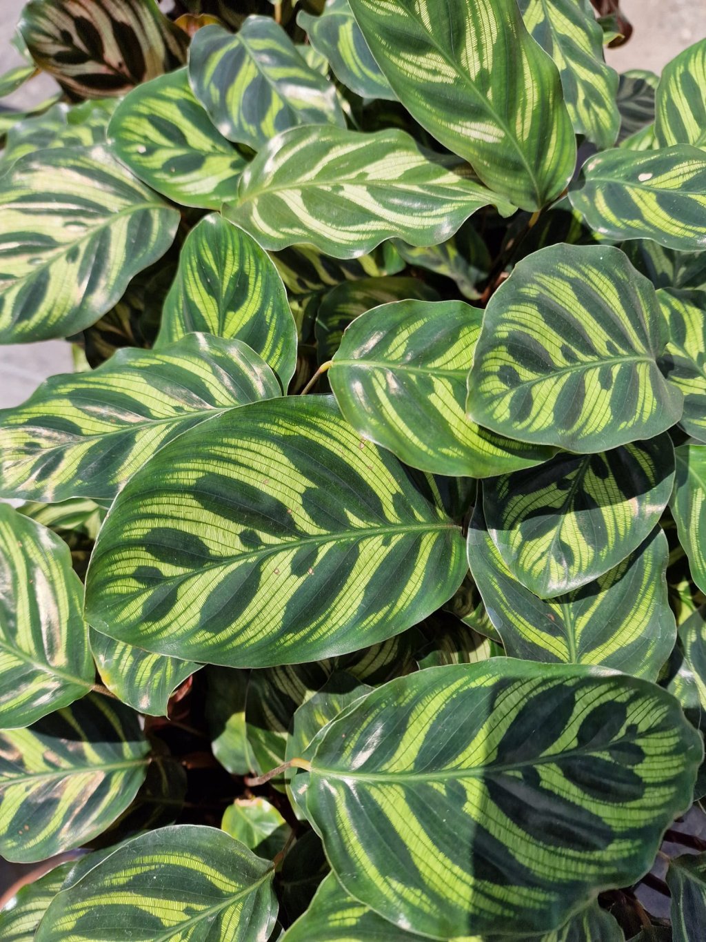 Calathea makoyana, známá také jako „paví rostlina“ (peacock plant), patří mezi nejoblíbenější dekorativní pokojovky díky svým jemně vzorovaným listům. Každý list je oválný, světle zelený s tmavě zeleným vzorem připomínajícím peří, zatímco spodní strana listů je purpurově červená. Vzhledem k průsvitnosti listů se často při protisvětle odhalí i spodní kresba na horní ploše, což zvyšuje dekorativní efekt.