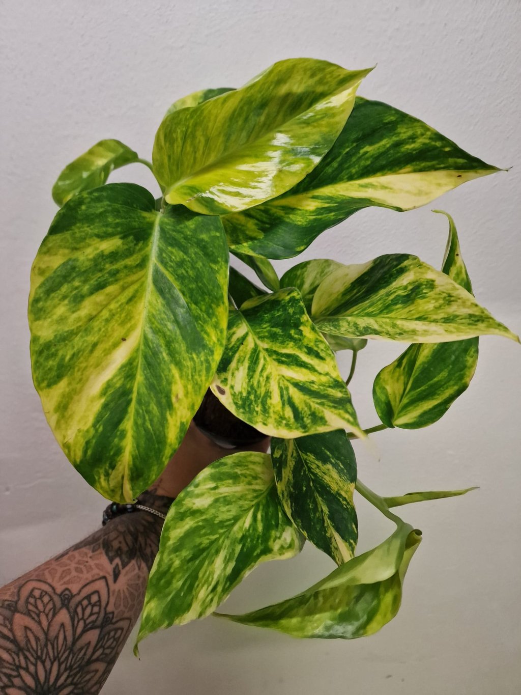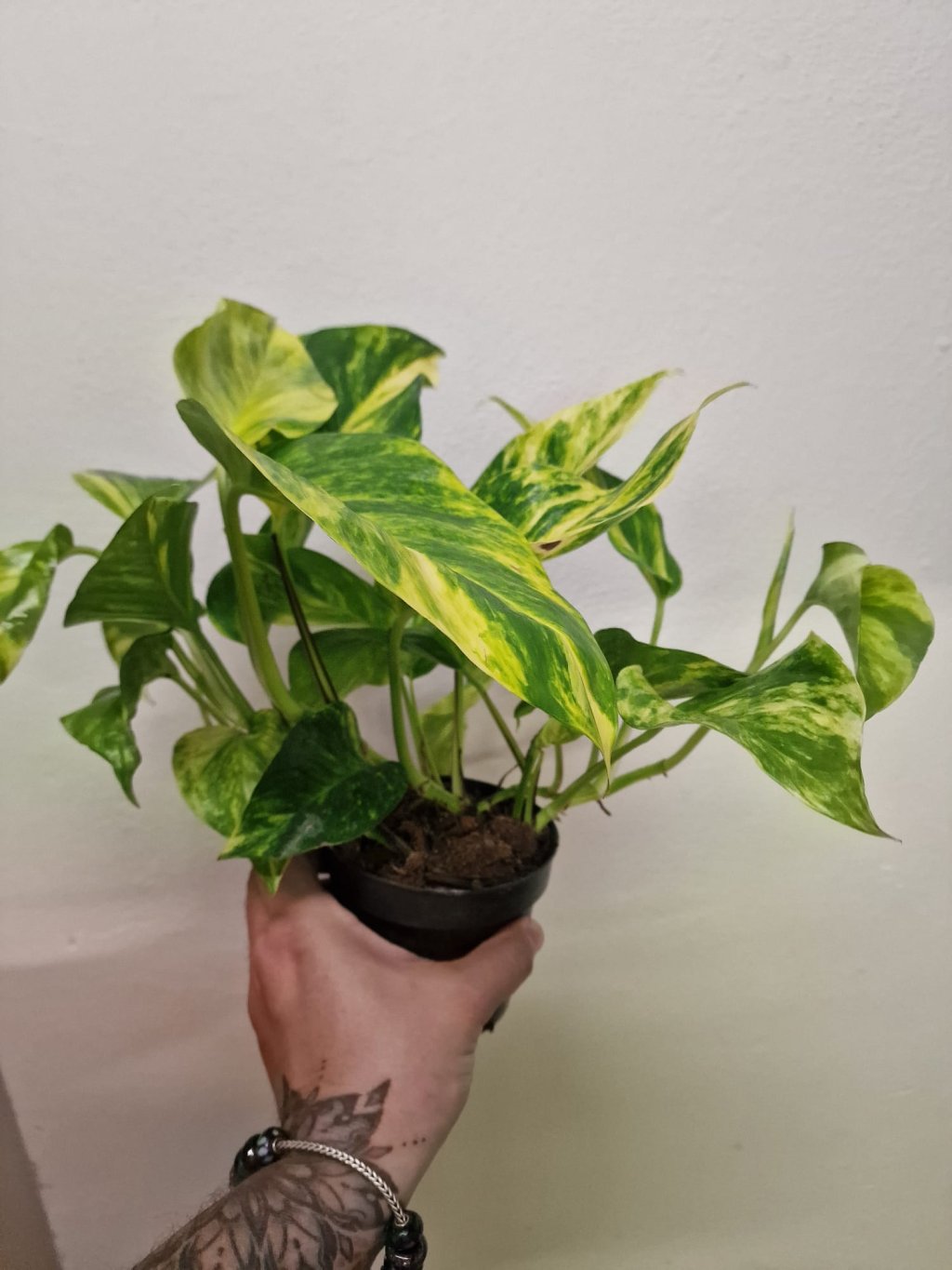Epipremnum aureum 'Hicolor', známé také jako "ďáblův břečťan", je dekorativní tropická pokojová rostlina původem z jihovýchodní Asie. Tento kultivar vyniká výrazně panašovanými listy v pestré kombinaci světlé zelené, krémové až žluté barvy. Listy jsou srdčité, lesklé a mírně voskovité, což z rostliny činí velmi atraktivní doplněk do interiéru.
