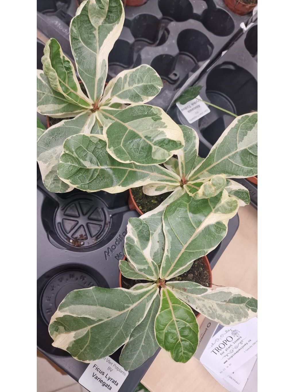 Ficus lyrata variegata, známý také jako panašovaný fíkovník lyrovitý, patří mezi luxusní pokojové rostliny, které vynikají svým unikátním vzhledem a výraznými listy. Tato variegovaná forma klasického Ficus lyrata se vyznačuje velkými, pevnými listy ve tvaru houslí, které kombinují tmavě zelené plochy s nepravidelnou krémovou až světle zelenou panašací.