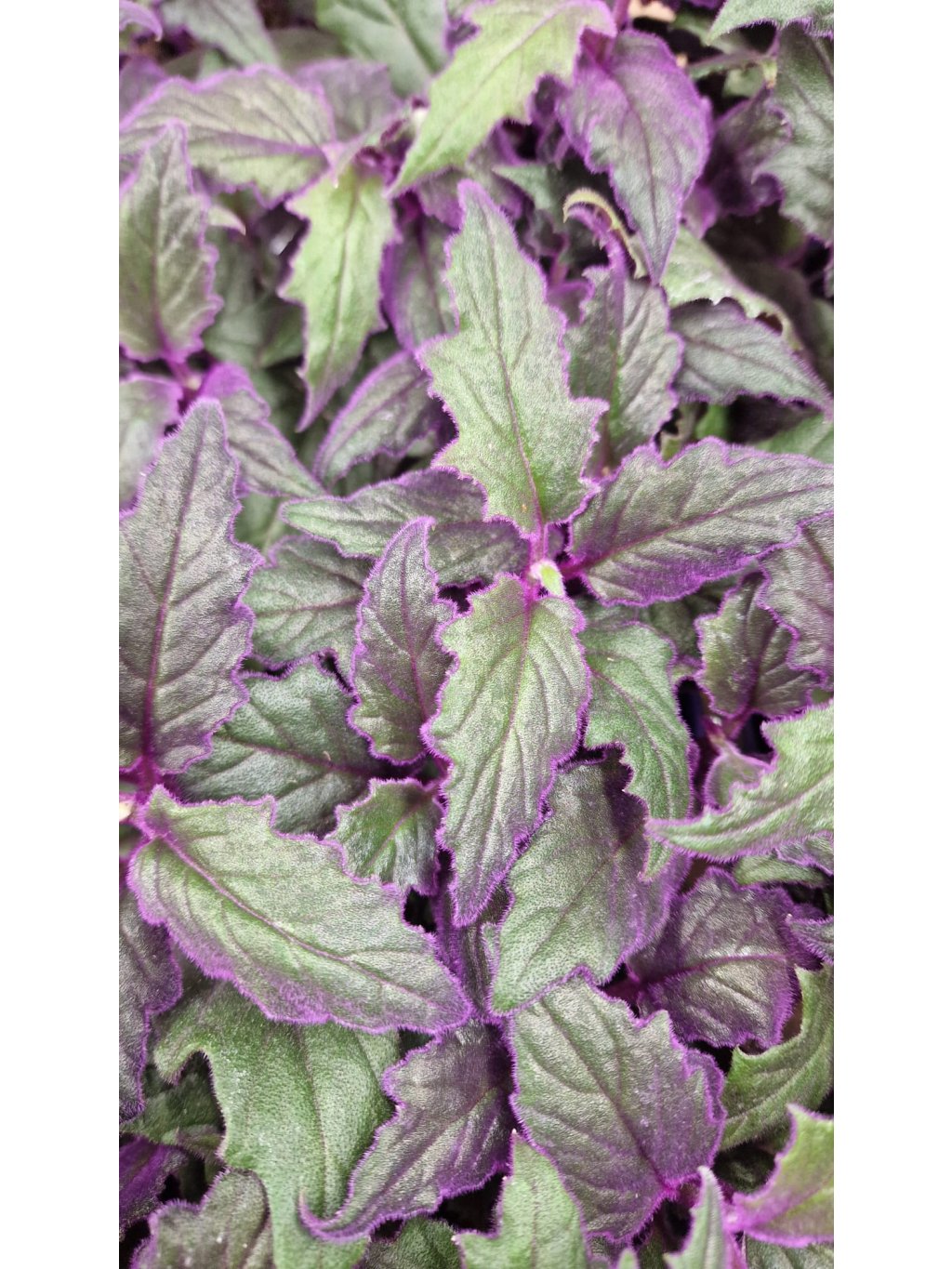 - Listy: Velké, oválné listy s výraznou fialovou barvou a jemnými chloupky, které dodávají rostlině sametový vzhled.