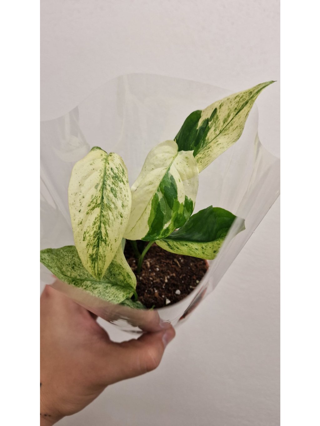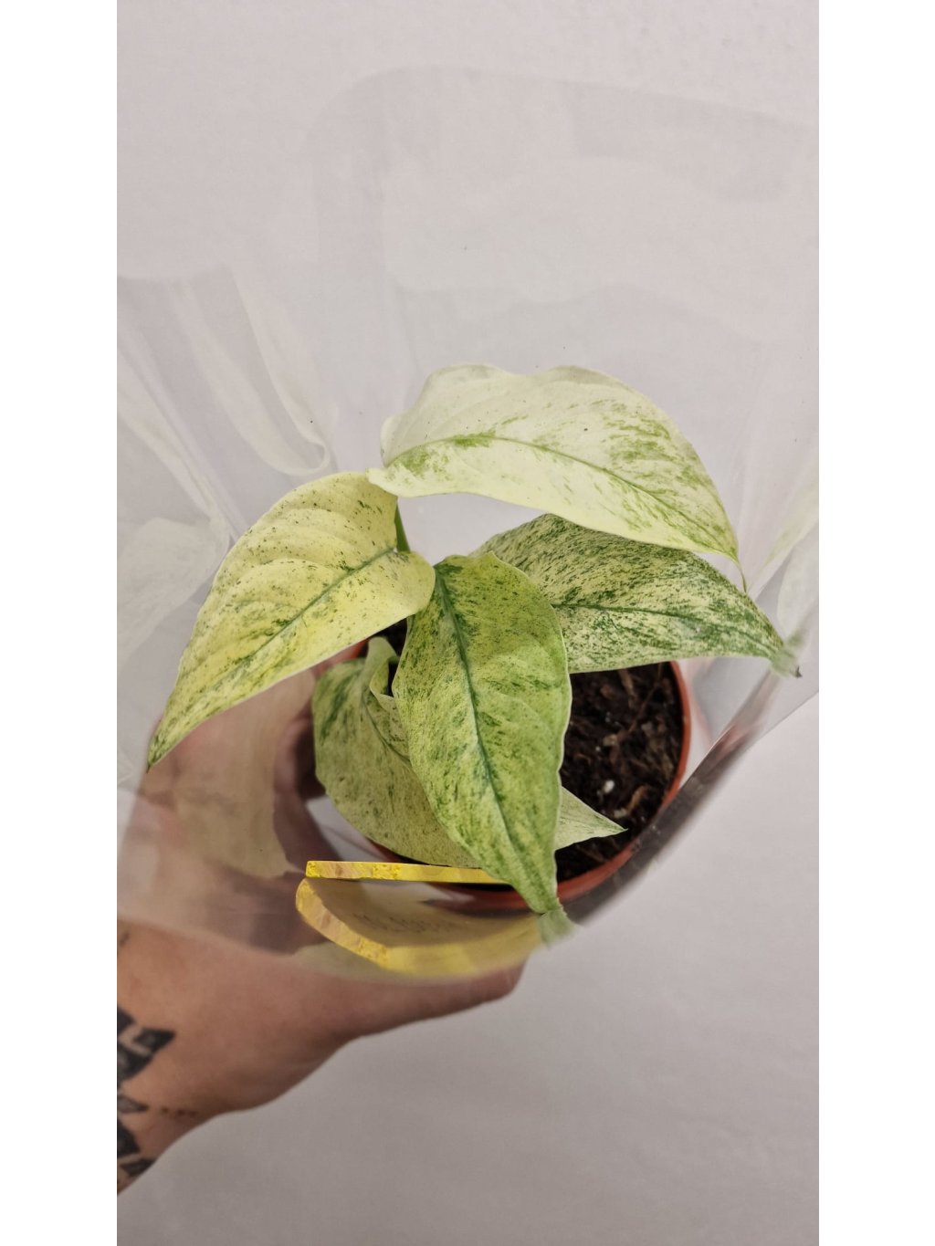 Monstera Laniata Mint patří mezi vzácné panašované druhy rodu Monstera a je vyhledávaná především pro své jemné mintové až světle zelené zbarvení listů. Listy jsou protáhlé, štíhlejší než u běžné Monstery deliciosa a postupně se na nich vytvářejí typické perforace. Panašování je často nepravidelné a každý list je originál, což výrazně zvyšuje estetickou i sběratelskou hodnotu rostliny.