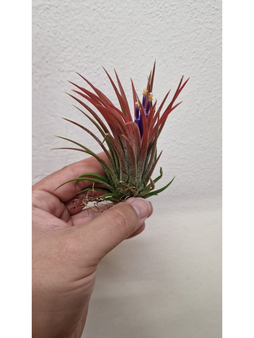 Tillandsia ionantha rubra je fascinující vzdušná rostlina pocházející z tropických oblastí Střední Ameriky. Tento druh je ceněn pro své výrazné červené listy a krásné fialové květy, které dodávají každému interiéru exotický a živý vzhled.